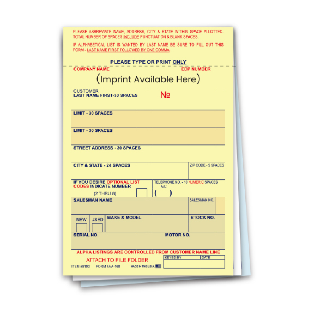 You're viewing: Vehicle Deal Labels – AA-168 – 3 Part – IMPRINTED – Qty. 1 each $999.00