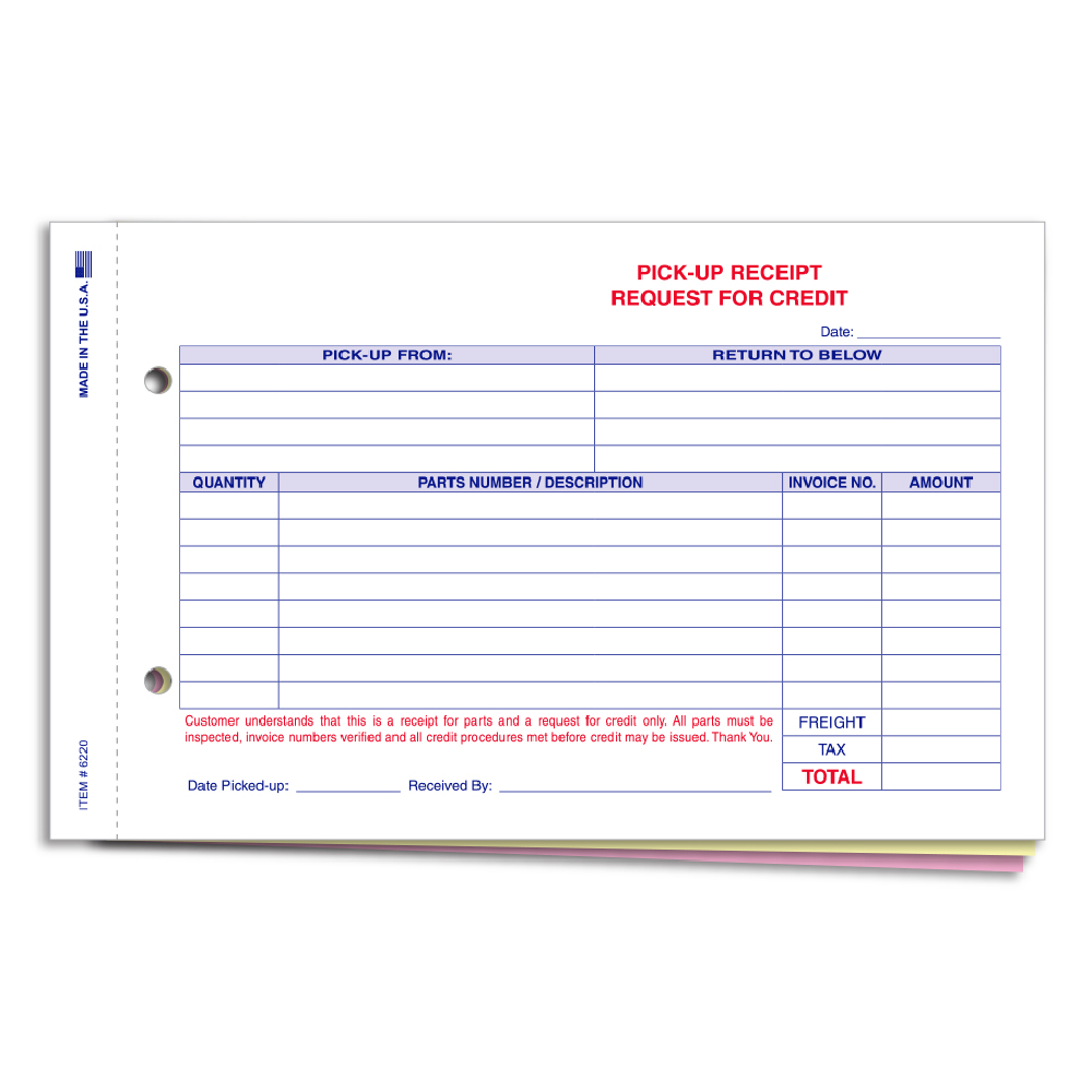 This form tracks returned parts and requests for credit. Part 1 is the customer copy, Part 2 goes to accounting and Part 3 remains in the parts dept.