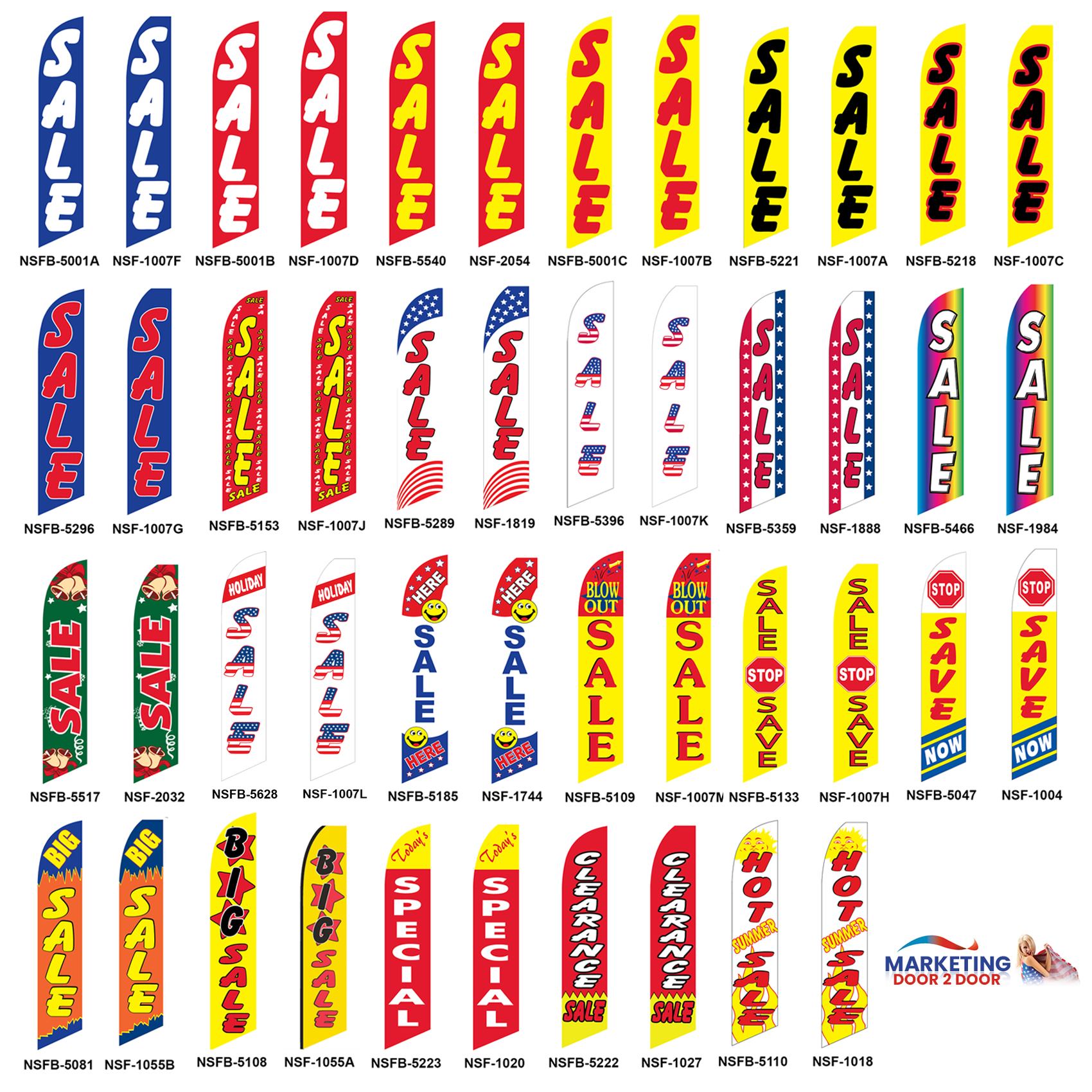These high-quality, 12′ tall professionally sewn swoopers display great with or without wind. These flags have a sewn sleeve that fits over our 4 piece pole set. Once the swooper is mounted on the pole set it reaches a height of over 15′. We have a large variety of methods to display the flag.