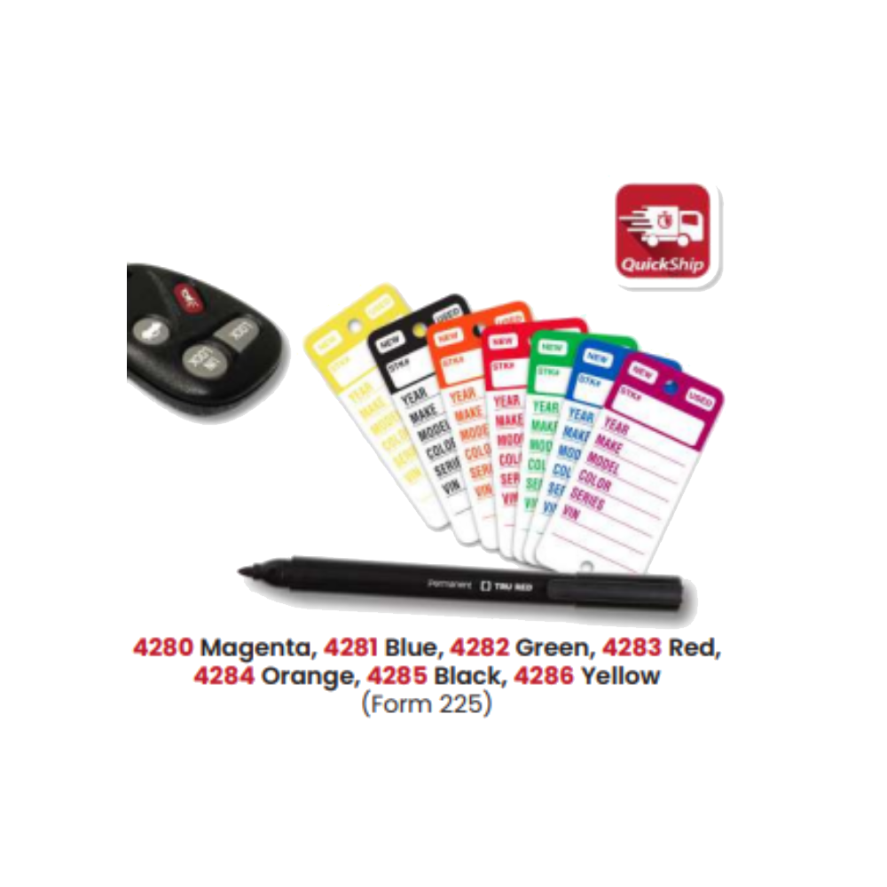 These rigid vinyl key tags come in seven different colors. Easy to write on.